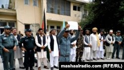 ده وویل قومي مشران، مجاهدین او دیني عالمان د خپلو افغان ځواکونو تر خوا ولاړ دي.